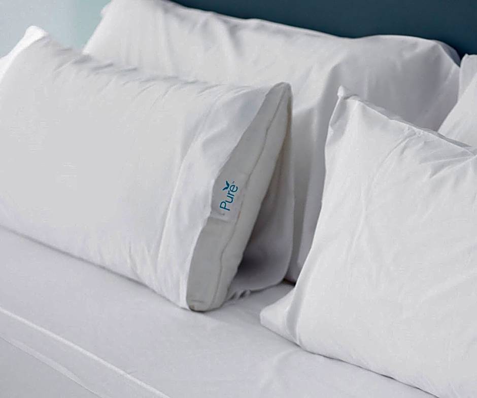 Allergy free suite features a microwave, a small refrigerator and a seating area with a sofa bed.